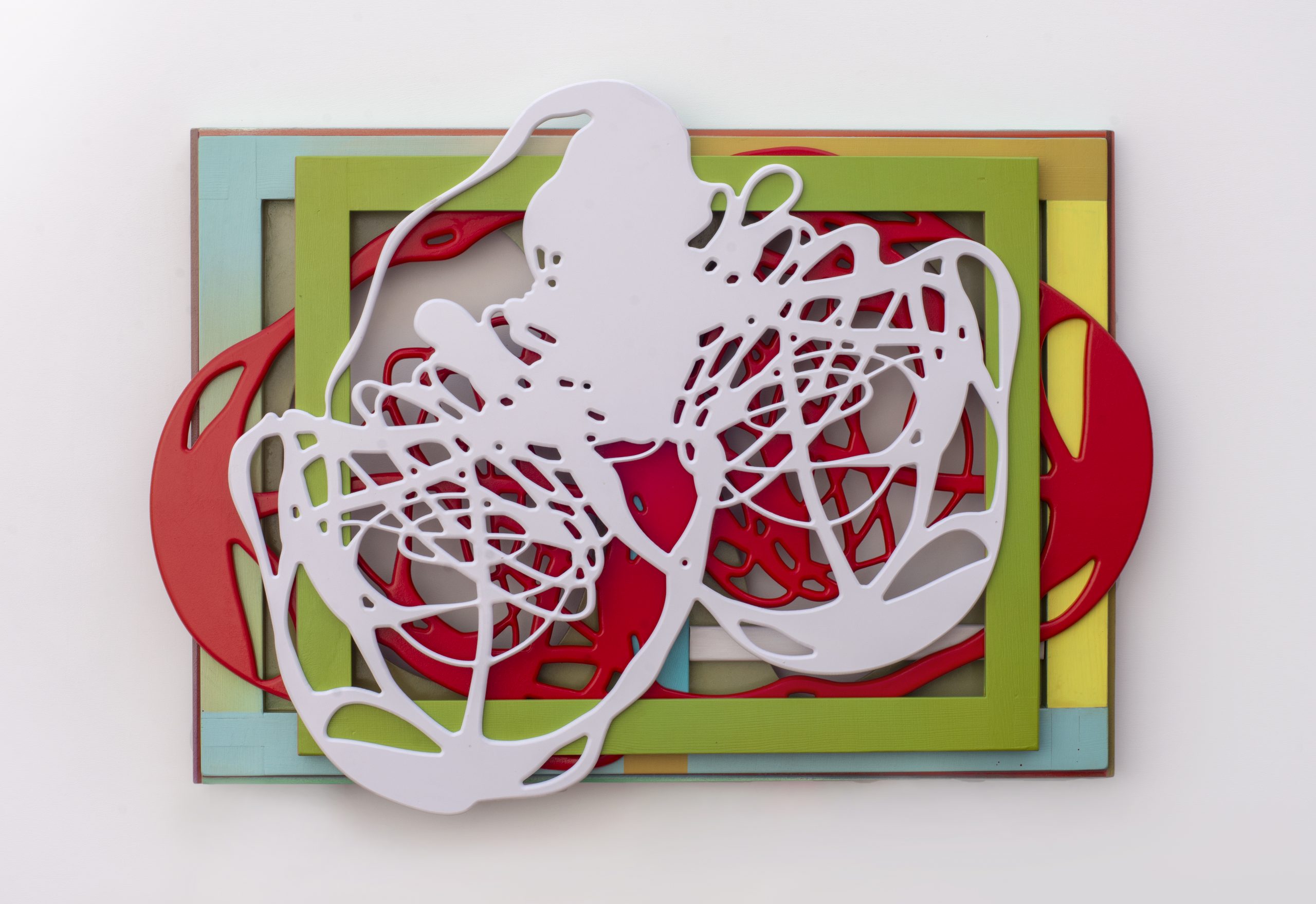 La rejilla orgánica, 2008. Pintura, pvc, madera, 122 x 172 x 10 cm.